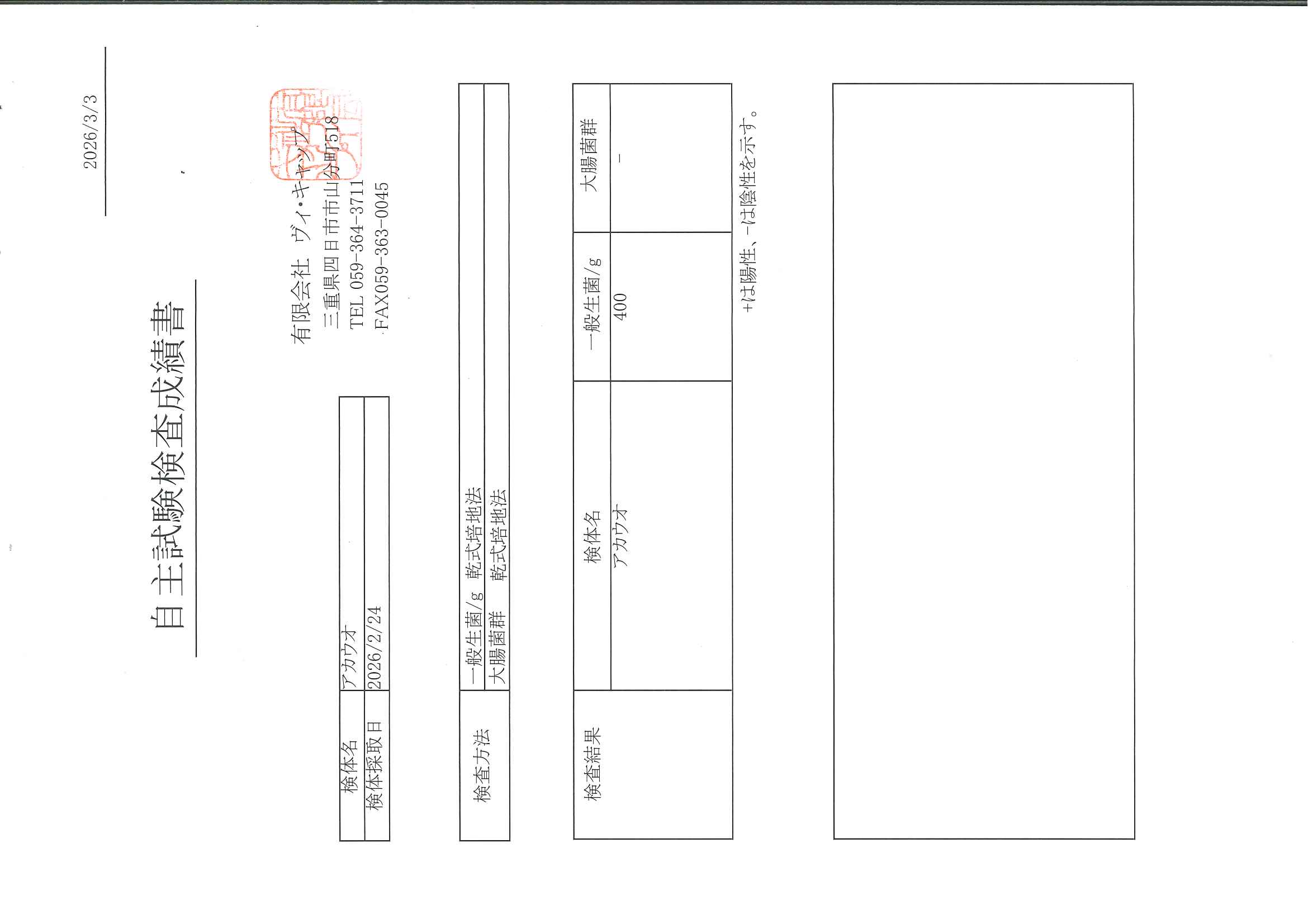 | 2026年3月3日 | アカウオ | 一般生菌/g 乾式培地法 大腸菌 乾式培地法 | ダウンロード |