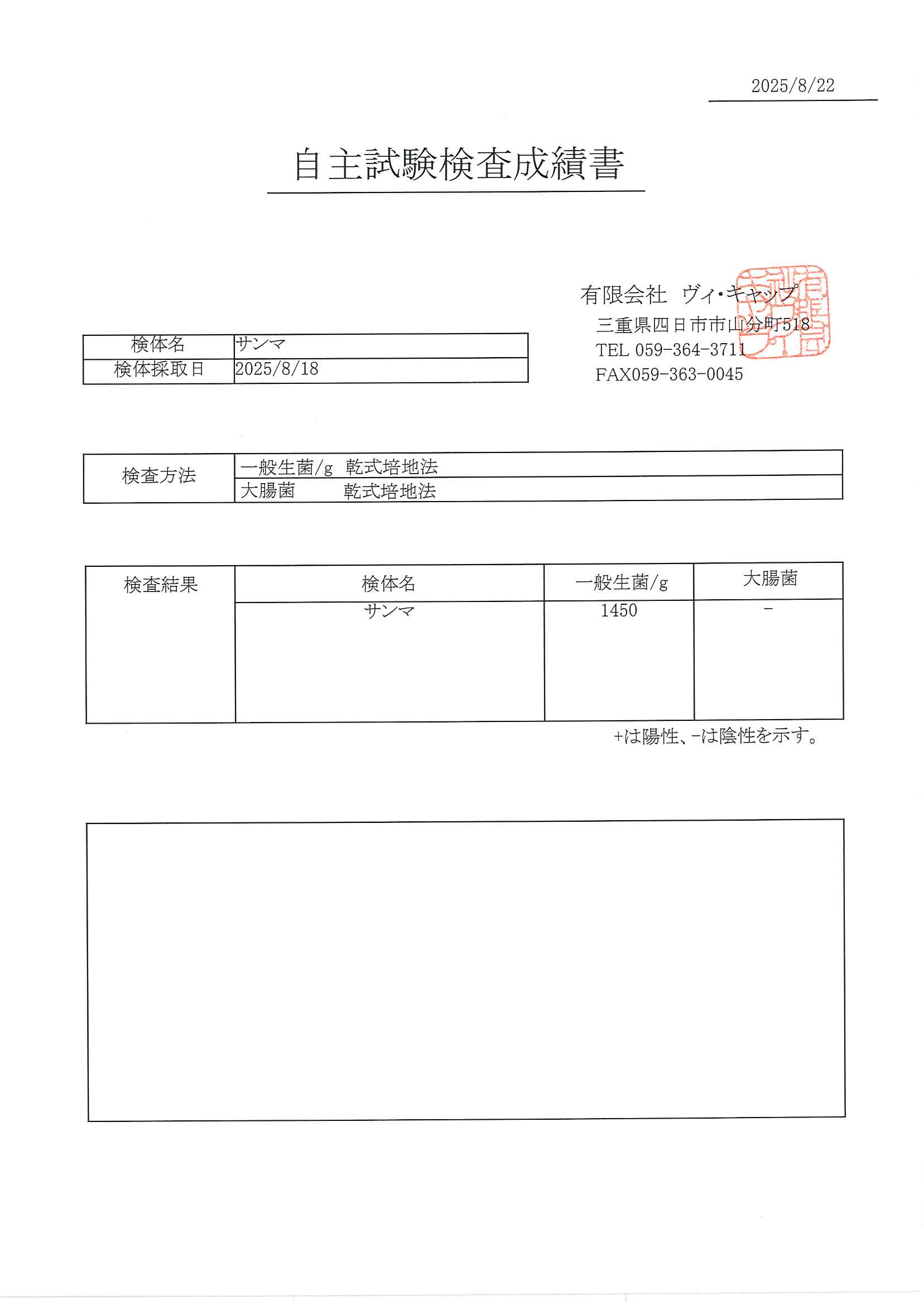 2025年8月22日サンマ一般生菌/g 乾式培地法 大腸菌 乾式培地法 ダウンロード