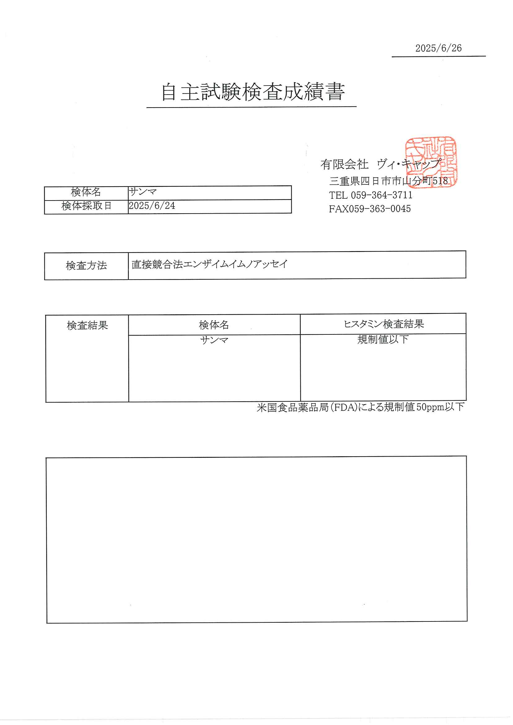 2025年6月26日サンマヒスタミン/直接競合法エンザムイムノアッセイ ダウンロード