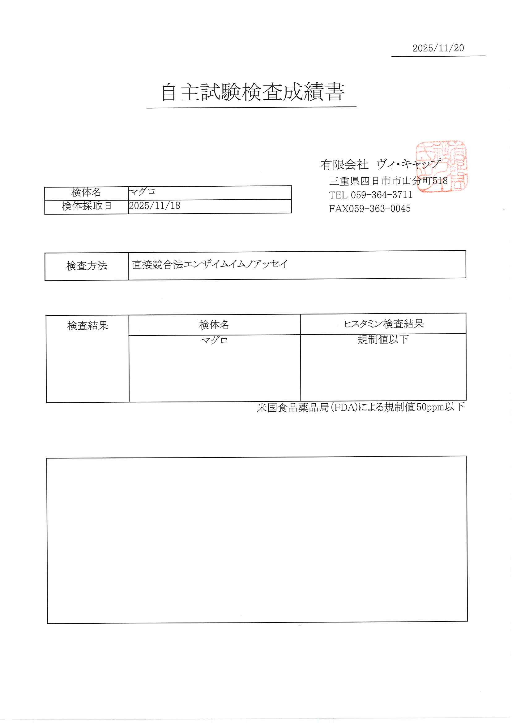 自主試験検査成績書のダウンロード